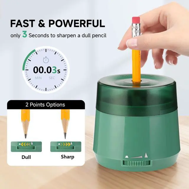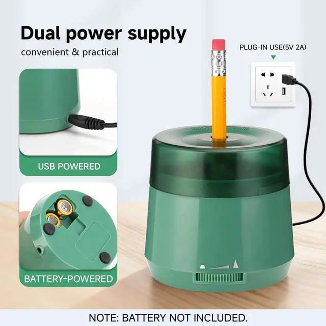 Sharpen your pencils with precision and convenience using this versatile electric pencil sharpener. Designed for both home and professional settings, this portable sharpener accommodates standard pencils ranging from 6-8mm in diameter. What sets this sharpener apart is its dual power options - connect via USB for continuous use at your desk, or use batteries for complete portability. The manual insert design gives you control over the sharpening process, helping prevent over-sharpening and extend pencil life. Perfect for students, artists, teachers, and office workers, this compact sharpener delivers consistent results whether you're at home, in the classroom, or at the office. The portable size makes it easy to carry in your backpack or desk drawer, while the durable construction ensures long-lasting performance.