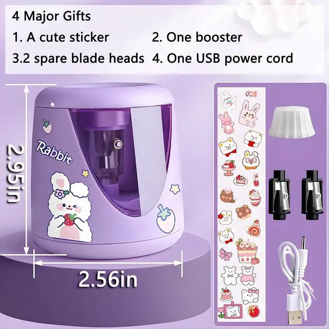 Product DescriptionThis professional pencil sharpener fits the most common wooden pencil size(6-8mm). A perfect helper for kids, children, student, engineer, teacher, artists and etc. The lovely appearance makes kids more interested in using the sharpener on their own and improves children?s hands-on skills. Our safety design can ensure kids will not get injury. Order today and brighten kids? day with this adorable and practical pencil sharpener.