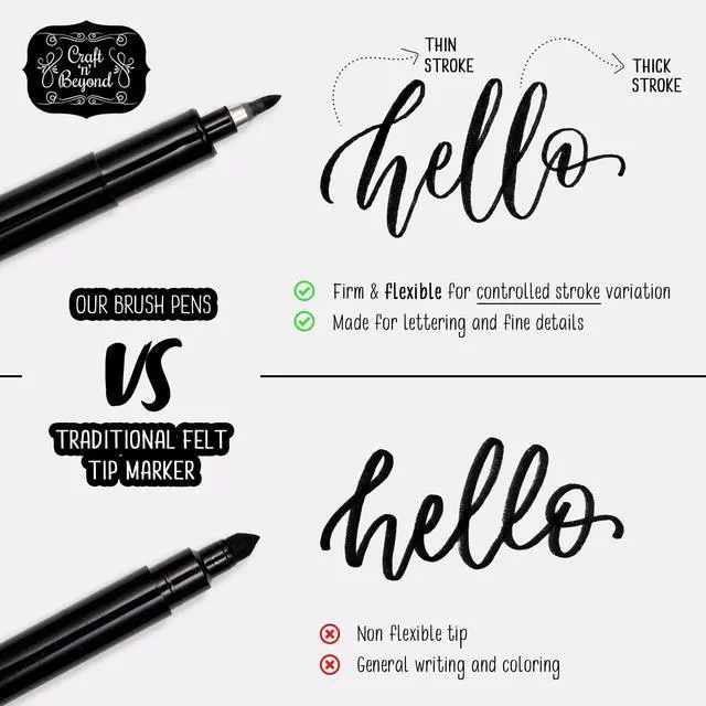 As opposed to traditional pens which have rigid tips, our pens are perfect for different letter drawing styles allowing the artist to give the letters a fun flair and an artful spin made with brush quality pens.