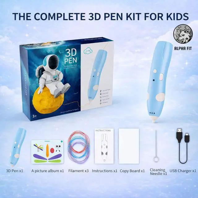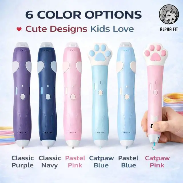 COMPLETE STARTER KIT & MULTIPLE COLOR OPTIONS: Everything your little artist needs is included to start creating right away! Each kit comes with the wireless 3D pen, safe PCL filament coils in vibrant colors, a USB charging cable, and an inspiring stencil guide book. Available in 6 exciting colors: Classic Navy & Purple, playful Cat Paw Pink & Blue, and soft Pastel Light Blue & Pink choose their favorite shade to spark endless creativity!