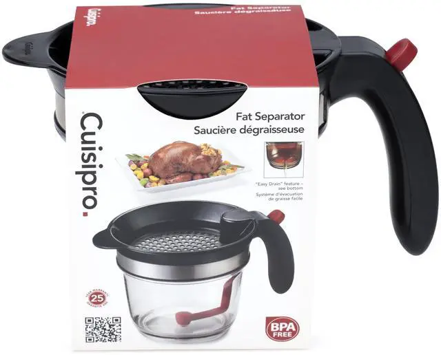 With a tightly sealed plug on the bottom of the Cuisipro Fat Separator, you can easily control what goes into your food. By pouring from the bottom, you don't agitate the fat. All the fat floats on top while you get all the flavor.