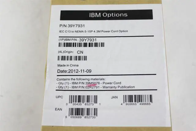 Package Includes: 1 IBM Lenovo Power Cable NEW 39M5076 02R2791
