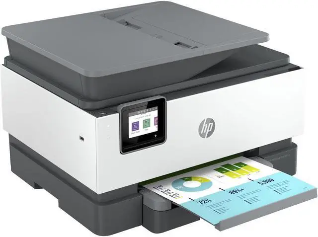Save space, time, and resources with the wireless-capable OfficeJet Pro 9015e All-in-One Inkjet Printer from HP, which packs printing, scanning, copying, and faxing into a single unit. This model has a 250-sheet paper tray for handling large jobs and is eligible, through HP Plus, for HP's Instant Ink Program, so users will always have a fresh cartridge when needed. At its core, the 9015e is an excellent printer with a print resolution of 4800 x 1200 dpi and draft print speeds as fast as 32 ppm in black and ppm 32 in color.