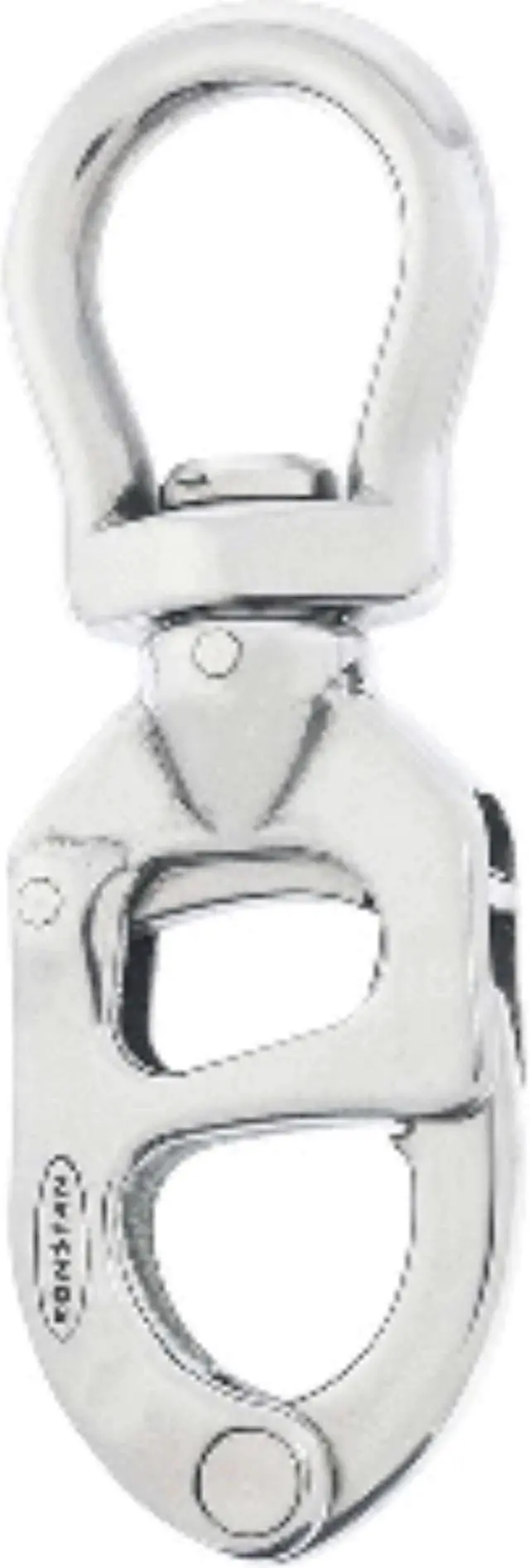 TriggerSnap™ Shackle - 105mmThe TriggerSnap™ latch mechanism allows quick and intuitive one-handed operation for attachment and release of the snap shackle. Release under load is easily accomplished by using a spike to safely actuate the trigger.Material selection and manufacturing processes have been carefully refined in the design and testing stages. Heat treated, investment cast 15-5PH stainless steel components offer high strength, corrosion resistance and durability. Each Ronstan TriggerSnap™ is individually proof-load tested and stamped with a production code for traceability.
