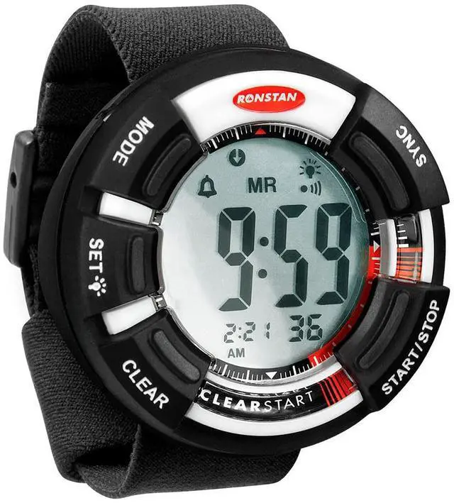 Clear Start Race Timer - 65mm(2-9/16) - Black/WhiteInnovative Race Functions with Bold StylingThe most popular sailing watch in the world just got better. Ronstans Clear Start race timer is completely updated with bold styling and true sailing functionality. Besides the fresh look they feature large buttons, easy to read displays and advanced intuitive programming designed specifically with the racing sailor in mind. Developed with input from some of the worlds top sailors, Clear Start watches and timers are sure to set the standard for years to come. If youre looking for a simple competitive edge, the difference is Clear Start.