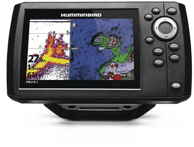 AutoChart Live: Create real-time maps of your fishing spots, with access to patented Humminbird® LakeMaster® features. Map depth contours, bottom hardness and vegetation as you drive your boat. Comes standard with eight (8) hours of built-in recording time and is compatible with AutoChart Zero Line SD cards for virtually-endless AutoChart Live mapping capacity. If fishing is in your DNA, there's no such thing as "too early" or "too far. " The HELIX? 5 Series answers the call with an uncompromising 5" widescreen, color display. This HELIX 5 CHIRP GPS G3 model features Dual Spectrum CHIRP 2D sonar, internal GPS with Humminbird Basemap and AutoChart Live built-in, with additional compatibility for Humminbird and Navionics premium fishing charts. SpecificationsDisplay Size - Diagonal5"Display Pixel Matrix800H x 480VSonar-StandardDual Spectrum CHIRP