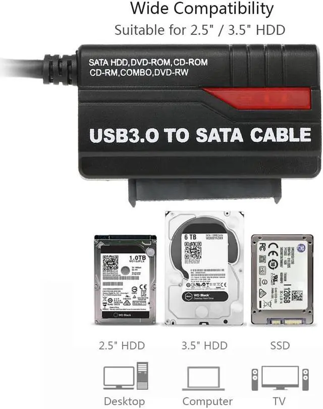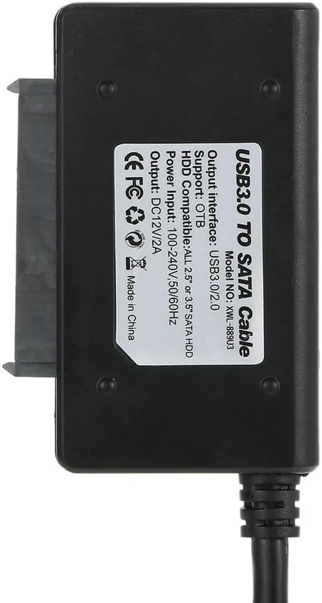 Specification:Model number: 891U3USB standard: USB 3.0Interface: 1 * SATASystem requirement: For Windows 98/2000/me/XP/vista/7, for Mac OSInput: 100-240V, 50/60HZOutput: DC 12V/2AItem weight: 46g / 1.62ozPackage weight: 245g / 8.64ozPackagke size: 18 * 14 * 6cm / 7.08 * 5.51 * 2.36in (L * W * H) This USB 3.0 to SATA adapter is a good solution for someone who have more than one hard drives and use it to backup and transfer data or files. Compared to traditional HDD enclosure, this USB 3.0 to SATA adapter is easier and more convenient, which supports plug and play. A good companion for you to build, repair and upgrade computers and TV station / government to backup data. Features: USB 3.0 high speed data transfer, complies with USB 2.0/1.1 standards. For 2.5 / 3.5 inch SSD or HDD hard drives. Supports ATA/ATAPI devices and compatible for standard 2.6 version ATA. Compatible for Windows 98/2000/ME/XP/VISTA/7/Linux/MAC OS 9.X/10.X Plug & play, easy to use. (If the computer doesn't detect Plug and Play, install a CD installation disc) LED indicator easy to show you the working status.