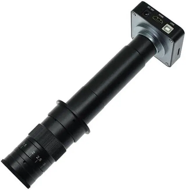 C-MOUNT Lens:Working distance: 95mmZoom c-mount Lens1.0X C-mount adapterZoom ratios:Objective Magnification Power by 0.7X - 4.5X(about 20X- 400X on the display)Size: 24.5mm(L) * 50mm(DIA)Weight: 630g Camera parameters:Image sensor: 21 million pixel CMOS SensorPhotosensitive size: 1/2.3 inch. a larger field of view than the usual 1/3Pixel size: 1.335mum times 1.335mumOutput interface: HDMI (Type A), USB (Type B), TF CardPhoto output: 21 MegaPixel, 21 million pixelsVideo output 2K@30 frame, 1080p@60 frameHDMI output Progressive 1920*1080 60 frames. Simultaneous output with USBHDMI output ratio Supports 4:3, 16:9, 16:10 screens to ensure that the image is not deformed.USB2.0 output (free drive) 1920*1080@30 1280*720@30 640*480@30. Simultaneous output with HDMITF card storage capacity up to 64GBWhite balance One-button white balance / automatic / manual, R, G, B individually adjustableExposure Manual / Auto. Adjustable exposure valueCrosshairs 8. Color, thickness, position adjustableCross mark 2Cross line 2 lines. Color, thickness and position adjustableSharpness, contrast, saturation support, adjustableBlack and white, negative film supportMirror horizontal and vertical mirroringLanguage Chinese/EnglishDigital zoom supportRemote control support. Remote video recording, the picture does not shake.Input voltage DC 12V (support 5-19V), 55-21 big mouthLens interface C/CS portNet weight 180 gramsGross weight 400 gProduct size 74*74*35mmPacking size 160*100*80mm