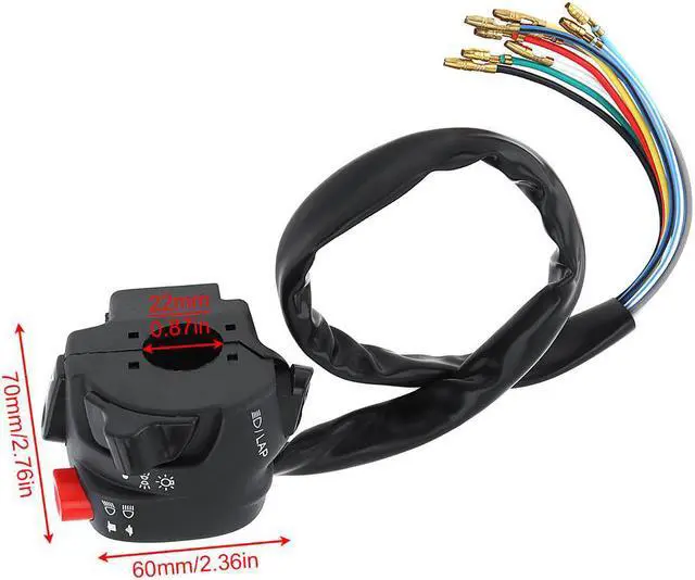 Feature: - 55cm Wire, you can fit it on anywhere on your motorcycle. - Universal 7/8" handlebar design, can be fit on most of motorcycles. - Can be used as ON OFF Start Kill switch for general lights, hazard light, fog light, head light and enginee power outlet. - Waterproof handle, fits all weather conditions.