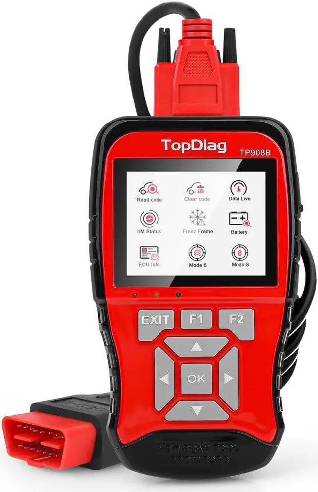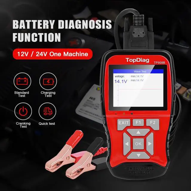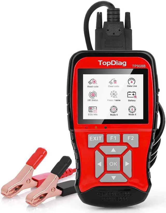 TopDiag TP908B 12V Carro-Tester Voltage Test Testador Battery Diagnosis Car OBD2 Scanner Engine Diagnosis Tool For Most Vehicles 1. TP908B OBDII / EOBD car diagnostic instrument is designed to support OBDII / EOBD engine emission related diagnosis 2.12V battery intelligent analyzer, all functions of battery test, start test and charging test.