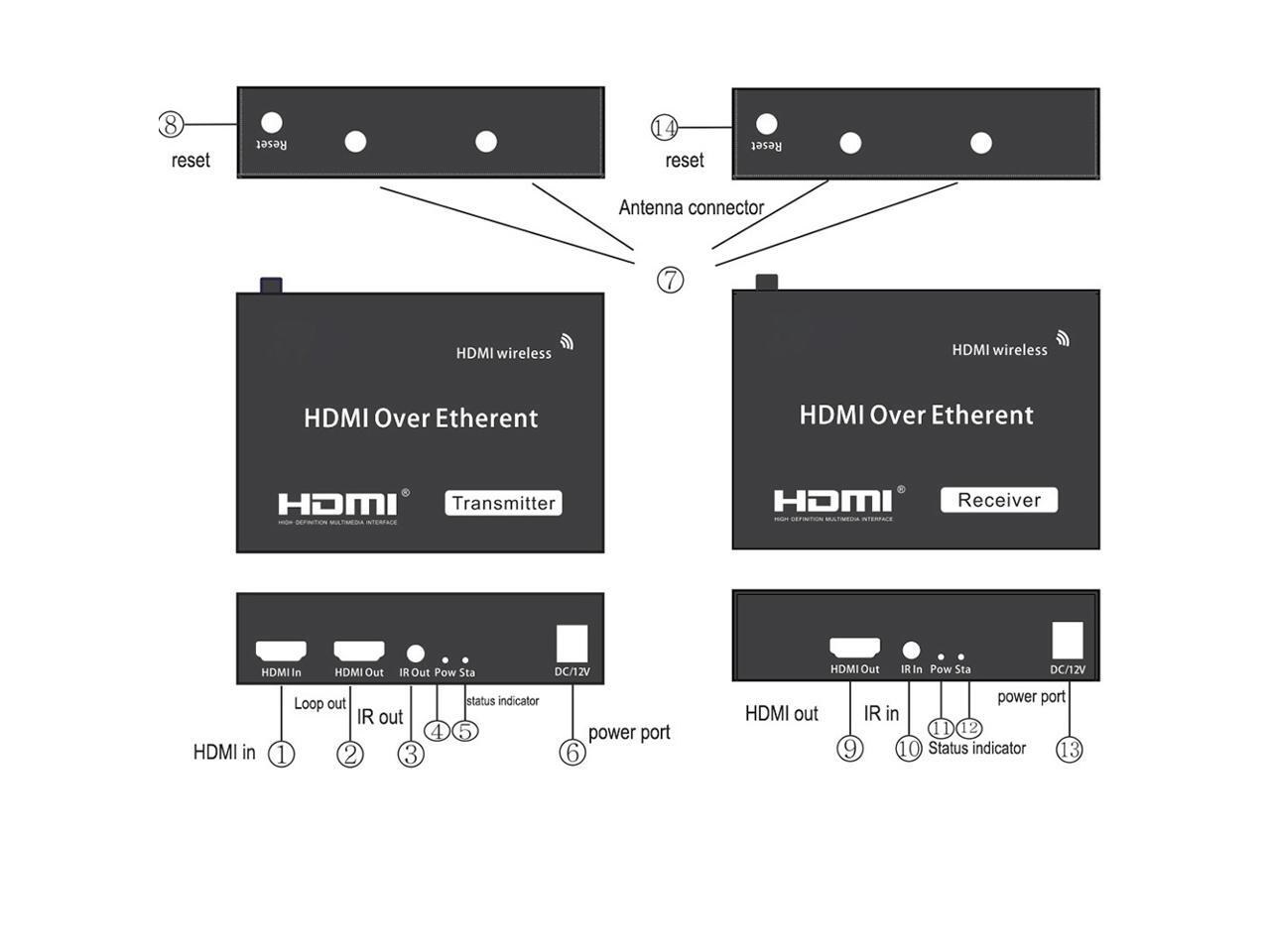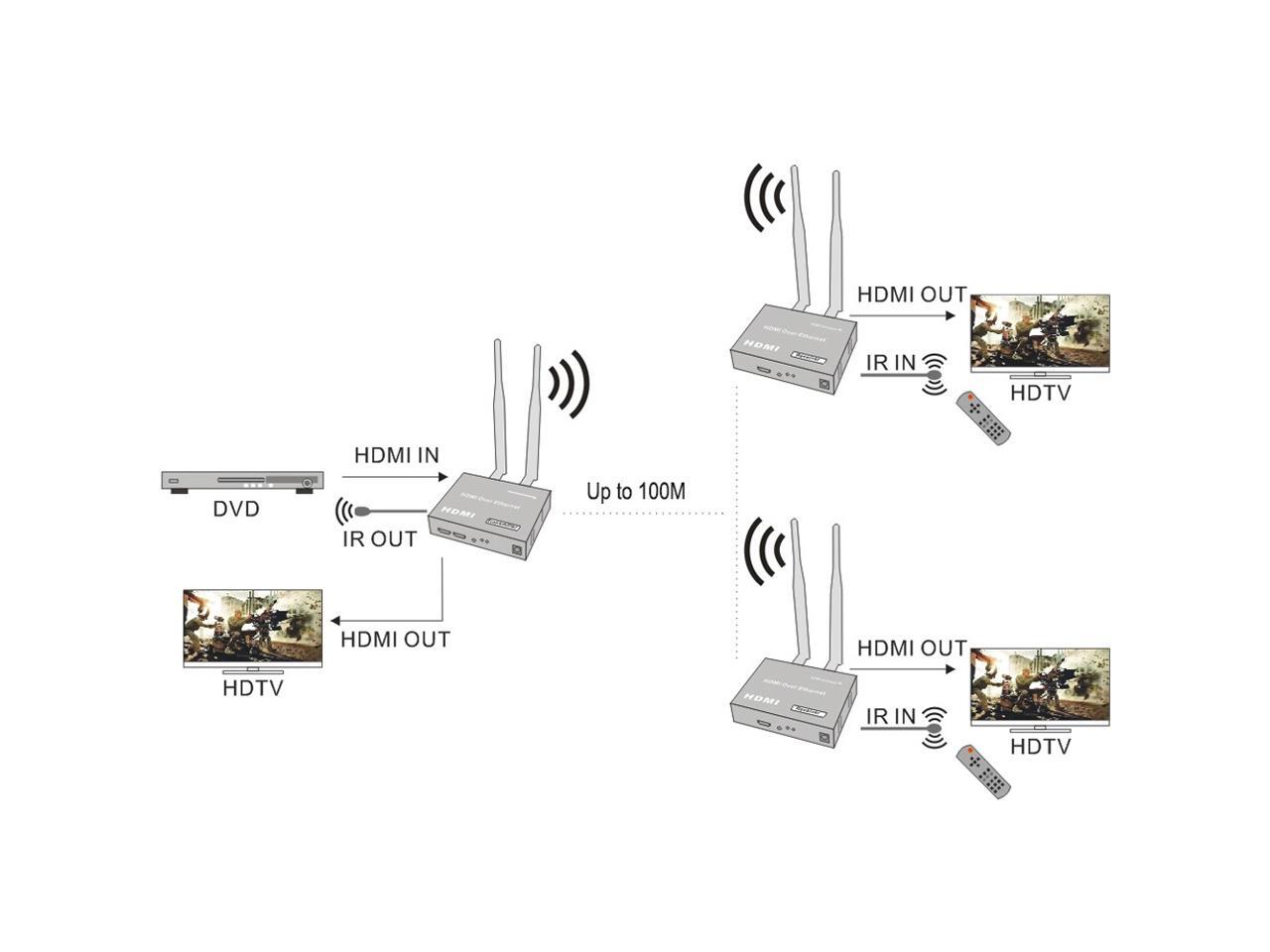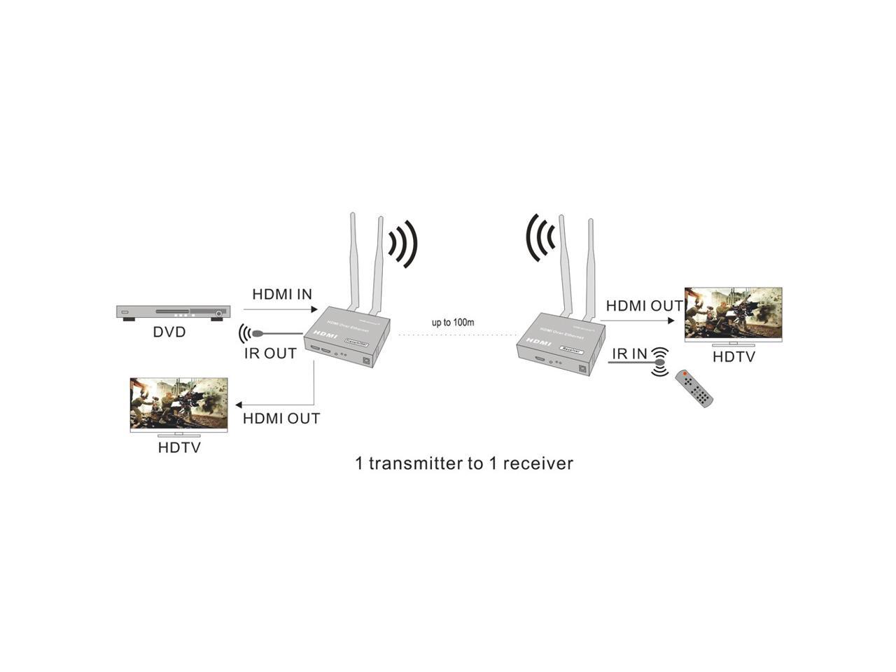 Wireless HDMI Extender 1080P 2.4G/5G Up to 100M 330ft Wireless HDMI Wifi Transmitter Receiver TCP/IP for PS4 PC Laptop HDTV