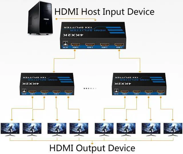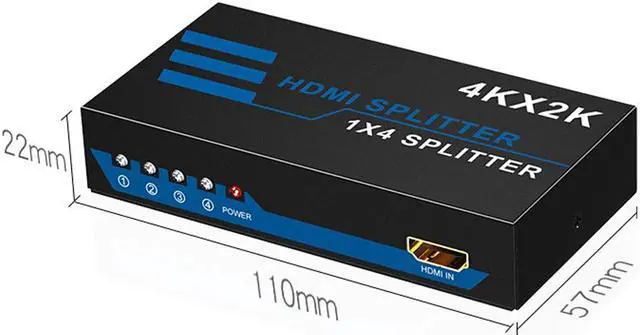 Product performance: 1. Simultaneously connect 4 HDMI displays to 1 video signal source for simultaneous display. 2. Support 720i, 720p, 1080i, 1080p, 4K*2K resolution3. Support high-quality HDTV resolution up to 4K*2K4. Fully support HDMI 1.45. Can perfectly support HDCP6. Small size, quick installation, simple operation, plug and play.