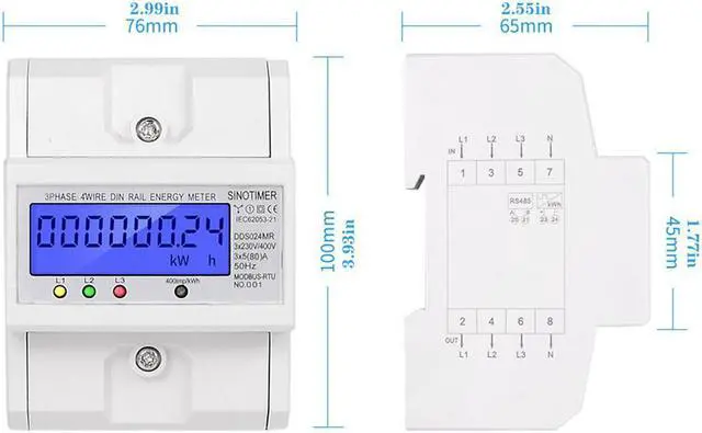 Rated VoltageSize: 10.1 * 7.6 * 6.5 cm / 3.97 * 2.99 * 2.55 in Multifunctional RS485 Modbus 3 Phase 4 Wire Electronic Wattmeter Power Consumption Energy Meter 5-80A 380V AC 50Hz
