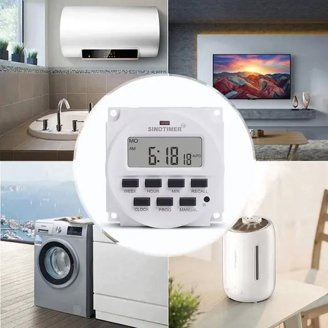 • Features:1. You can use the timer to switch ON/OFF any electrical equipments at a preset timer.2. 16 ON/OFF programs per day, 15 combinations to a week.3. 24 hours / 7 days a week programmable.4. Built-in battery for backup the memory (save the programs you set)when power failure.5. Automatic time error correction +/- 30 sec, weekly.6. Repeat programs with 16 on/off settings, and setting on/off manually.7. Easy to read LCD display, LED indicators.8. Countdown OFF time range 1 minute to 24 hours.9. It is suitable for water heater applications, panel mounting, wall switch applications, lighting control, outdoor switch applications.