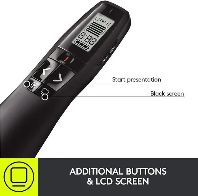 Logitech Professional Presenter R800, Wireless Presentation Clicker Remote with Green Laser Pointer and LCD Display