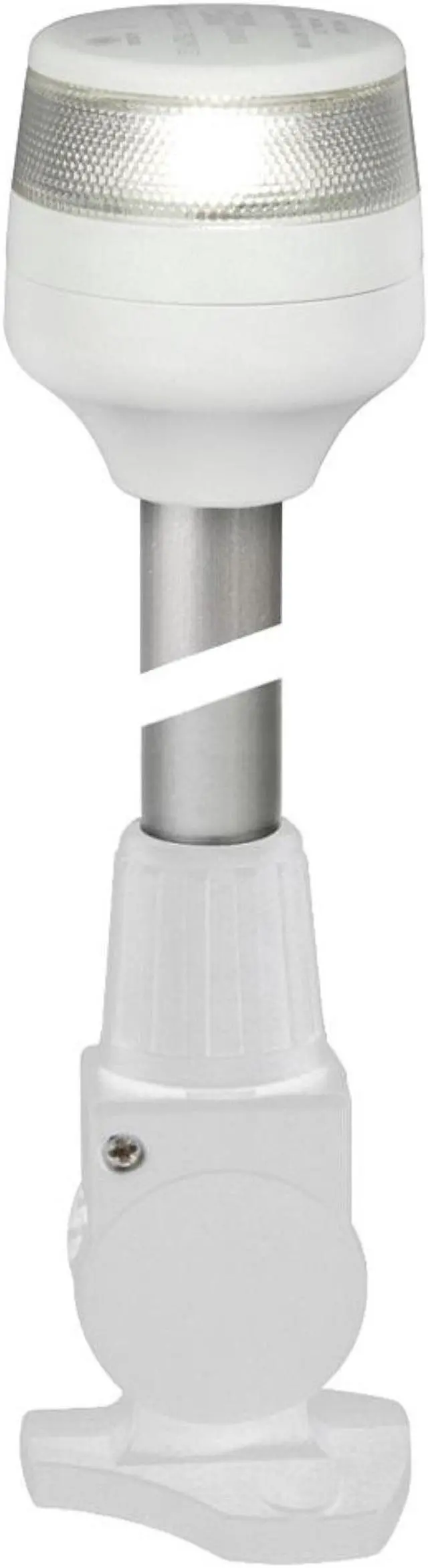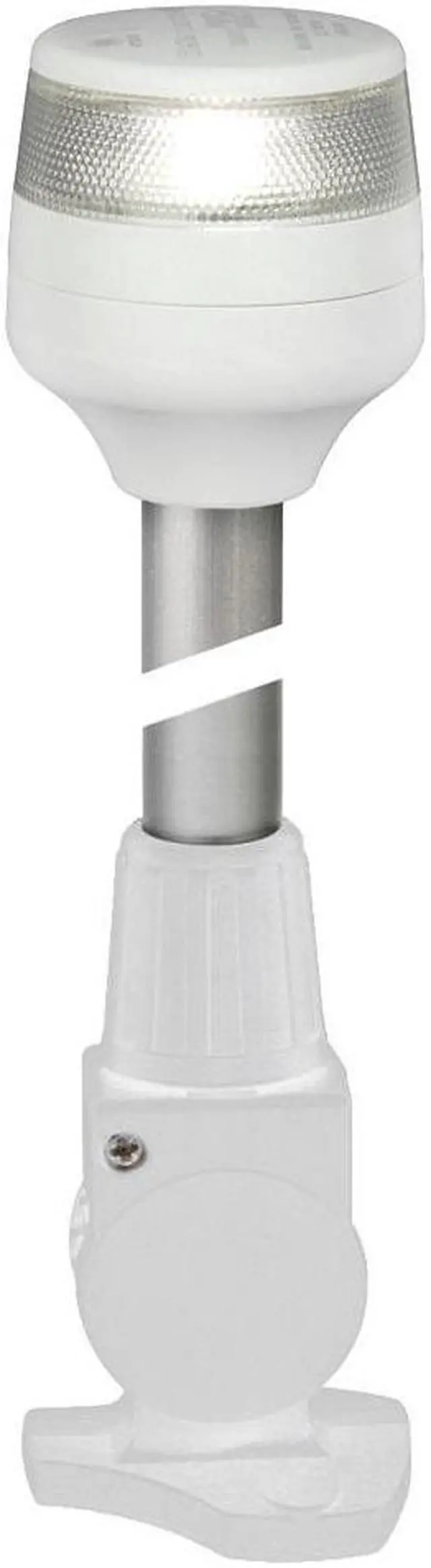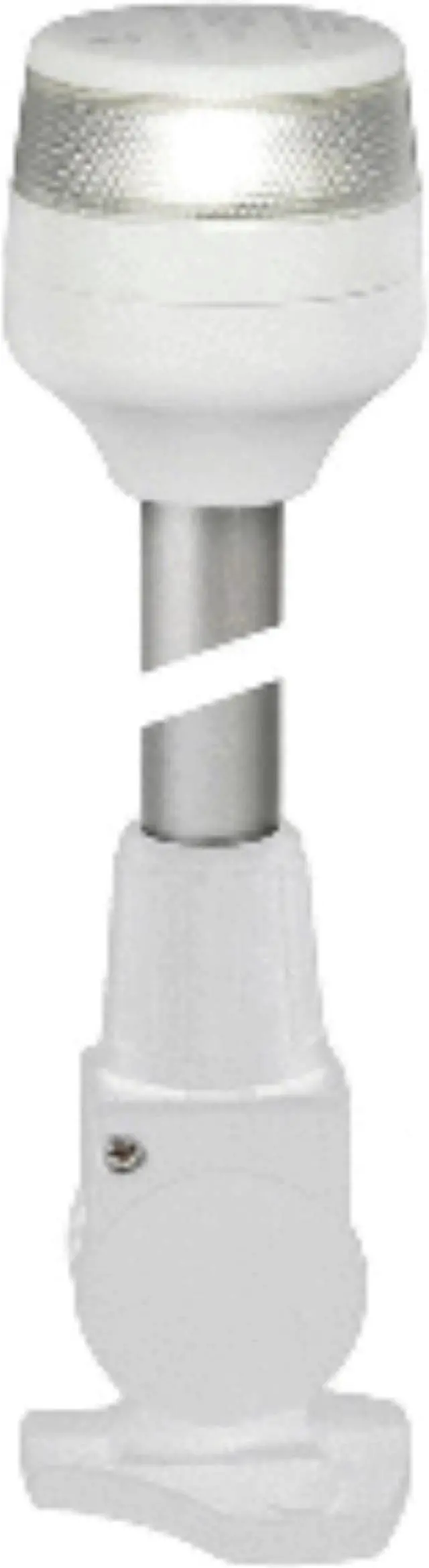 2nm All Round White Fold Down Pole Navigation Lamp - 8" - White BaseHella marine NaviLED 360 lamps feature single LED efficiency, advanced MultivoltTM electronics and precision optics for reliable and highly visible all round lightingTaking the popularity of the restyled NaviLED 360 Compact All Round / Anchor lamp Hella marine has expanded the product family with pole mounted versions with fixed, fold down and plug-in base options.Using only high performance materials the NaviLED 360 Compact series is long term durable in demanding marine environments.A power consumption of less than 1W power offers exceptional power efficiency for a 2 NM all round anchor lamp.Each lamp is completely sealed (IP67) and manufactured using Swiss Made Grilamid with unsurpassed properties. Long term stability against UV degradation coupled with high impact and chemical resistant meaning these lamps will not yellow, become embrittled or corrode.Internationally approved the NaviLED 360 series meets the requirements of COLREG, USCG, ABYC-16, RCD and WHEELMARK. MultivoltTM circuitry provides constant illumination and circuit protection from 9-33V DC.Hella marine LED navigation lamps are expertly designed and precision manufactured in New Zealand and backed a 5-year warranty for complete peace of mind.