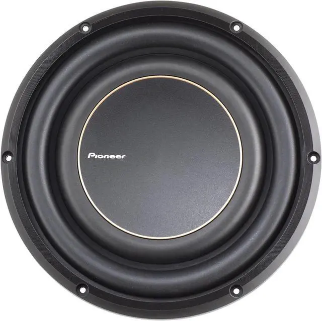 The Pioneer TS-D10LS4 is a powerful 10" shallow mount subwoofer that delivers impressive bass performance in tight spaces. With a maximum power handling of 1300 watts and a single 4-ohm voice coil, this subwoofer provides strong, deep bass while maintaining installation flexibility. The Aramid Fiber Interlaced IMPP cone ensures enhanced durability and responsiveness, producing clear, accurate sound even at high volumes. Designed for shallow installations, the TS-D10LS4 is ideal for vehicles with limited space but high-quality audio needs. It combines superior materials and engineering to elevate your car audio experience.