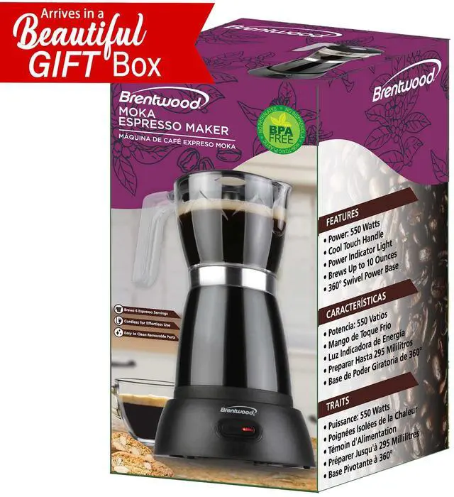 BTWTS119BK, Brentwood TS-119BK 6-Cup Electric Moka Pot Espresso Machine (Black). Manufactured in Country of CHINA