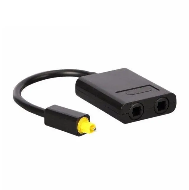 Dual Port Toslink Digital Optical Audio Splitter Adapter Fiber Optic Audio Cable 1 In 2 Out Black Color