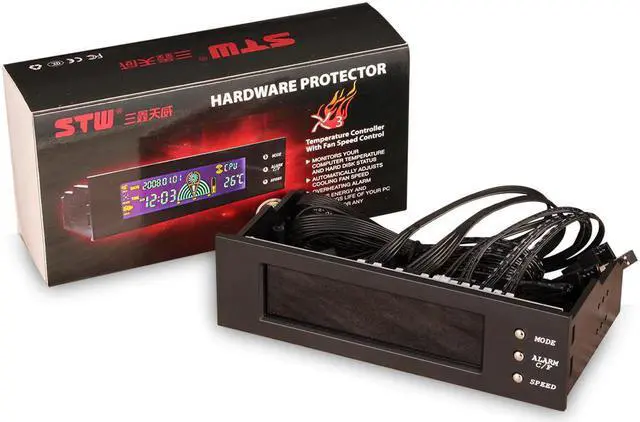 5.25inch 12V PC Computer Fan Controller 3 Fan Speed Controller Temperature Sensor LCD Digital Display Front Panel for PC