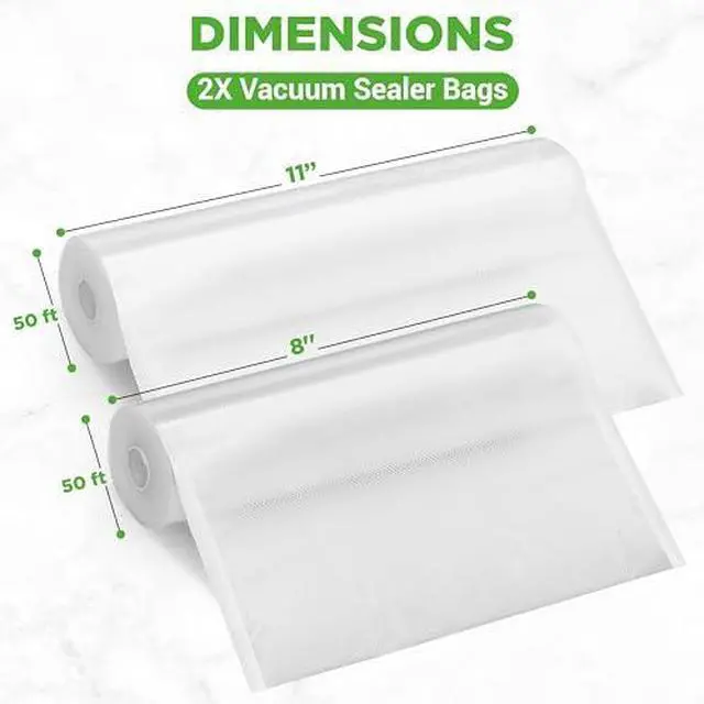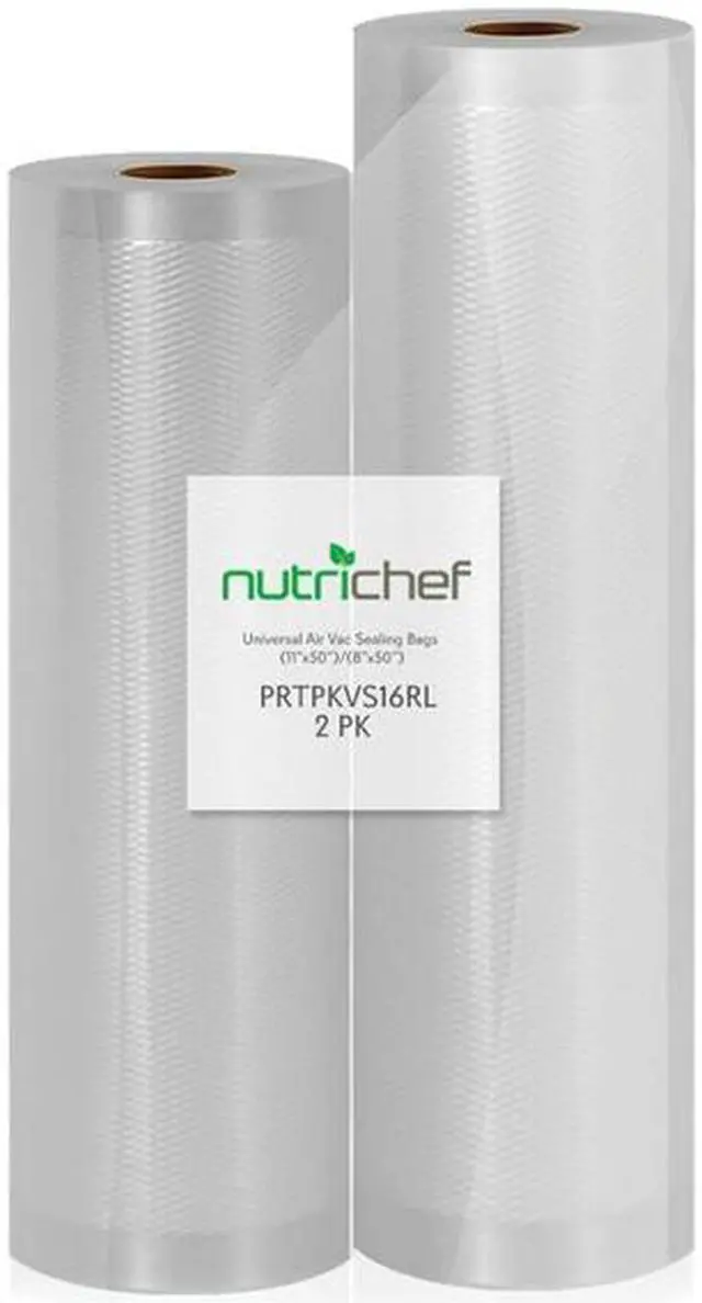NutriChef PRTPKVS16RL Universal Combo Vacuum Sealer Bags, 100 FeetIdeal for nutrichef (TM) models PKVS10BK, PKVS10WT, PKVS18SL, PKVS18BK, PKVS20STS, and PKVS30STSUniversal vacuum sealer bagsUser can create custom length vacuum bags for all types of foodCompatible with virtually all kitchen vacuum air sealing systemsMultilayered bags seal in freshnessIdeal for preparing foods via sous videFood-grade quality and safetyBPA freeReusable and safe for freezers, microwaves, and boilingCan also be used to store collectibles and non food itemsFDA tested and approvedIncludes 1 roll of 50 ft. x 8 in. vacuum sealer bags and 1 roll of 50 ft.