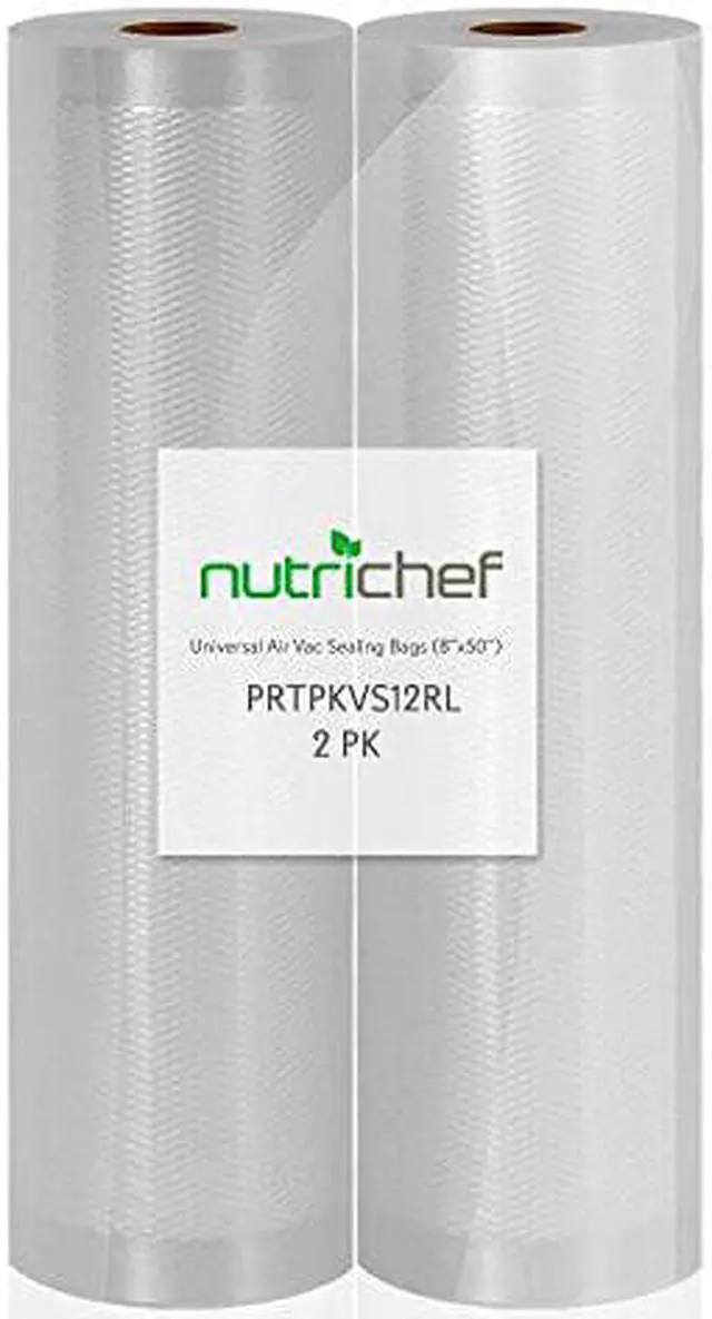 NutriChef PRTPKVS12RL Universal 8-Inch Vacuum Sealer Bags (100 Feet) &bullIdeal for nutrichef (TM) models PKVS10BK, PKVS10WT, PKVS18SL, PKVS18BK, PKVS20STS, and PKVS30STS&bullUniversal vacuum sealer bags&bullUser can create custom length vacuum bags for all types of food&bullCompatible with virtually all kitchen vacuum air sealing systems&bullMultilayered bags seal in freshness&bullIdeal for preparing foods via sous vide&bullFood-grade quality and safetyBPA free&bullReusable and safe for freezers, microwaves, and boiling&bullCan also be used to store collectibles and non food items&bullFDA tested and approved&bullIncludes two 50 ft. x 8 in. rolls of vacuum sealer bagsUniversal 8-Inch Vacuum Sealer Bags (100 Feet)