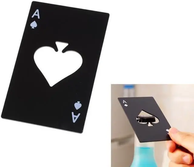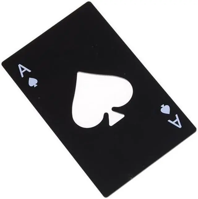 Black Stainless Bottle Soda Beer Cap Opener Playing Card Spades Poker Bar Tool