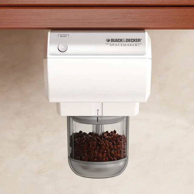 The Black & Decker Spacemaker Mini UTC Food Processor and Coffee Grinder in White is the perfect addition to any home kitchen or mobile home. Its under-the-cabinet setup helps keep the kitchen organized and clear. The coffee grinder also doubles as a food processor to help with multiple jobs. Features a quick pulse button and stainless steel blades for fast results. The 2 plastic containers can hold up to 0.75 cups.