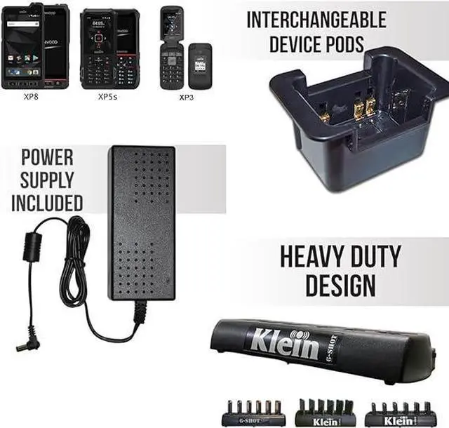 INTERCHANGEABLE CHARGING PODS - Includes 6 interchangeable pods tailored for SONIM XP5s, offering convenience for multi-device charging in one unit.