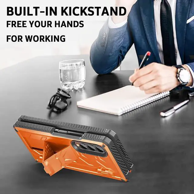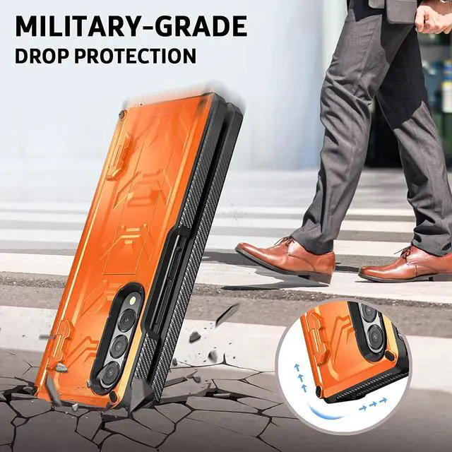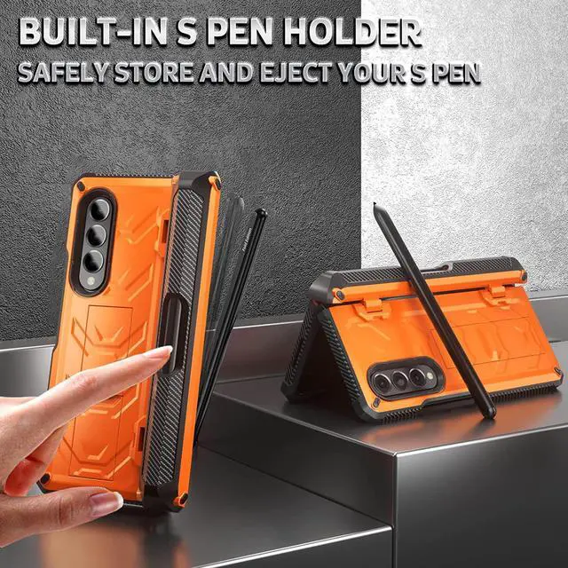 Case for Samsung Galaxy Z Fold 4 5G (2022 Release),Samsung Z Fold 4 Case with S Pen Holder & Kickstand, Full Body Rugged Hinge Protection Case with Built-in Screen Protector, Metallic Orange