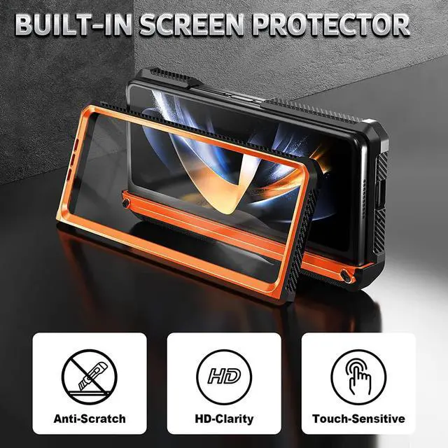 Z Fold 4 Case with Screen Protector- This Samsung Galaxy Z Fold 4 Case has a built-in HD front screen film, which is very responsive and scratch-resistant. High clarity and high sensitivity maintain the original touch and visual experience. Note: the screen prtector is separate. Precise cut and design allow easy access to all ports, sensors, speakers, cameras and other features.