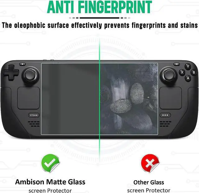Anti Glare: Steam Deck premium matte anti-glare etched glass screen protector, with matte on surface, anti glare function to suppress light reflection, gaming in strong sunlight, outdoors or in light, is not dazzling, bring you a better game experience. Surface oleophobic coating to reduce fingerprints.