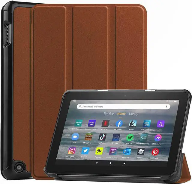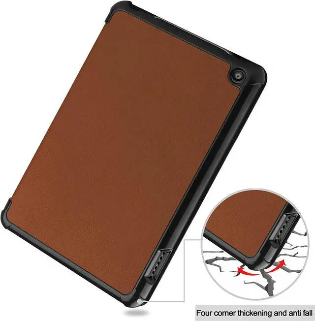 Leather Case for Fire HD 7 2022 12th Gen Case Flip Slim Leather with Trifold Stand Fire HD 7 Auto Wake Sleep Smart Cover Soft TPU Back Shockproof Case (Fire HD 7 12th Gen, Brown)