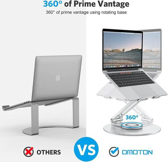 ROTATABLE & ERGONOMIC: Featuring a 360° rotatable axis connecting with the base, this laptop stand allows you to swivel your laptop to any angle. It elevates your laptop to your eye level to fix your posture and reduce your neck and back stiffness.