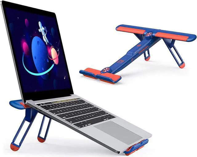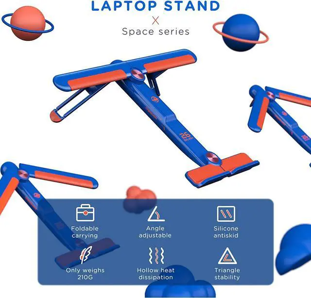 Portable and Foldable-Light and SmallThis portable laptop stand only weighs 0.8 pounds and can be quickly folded into a small size with 3 steps, less than 9 inches, which makes it easy to carry-on. Ideal for people who use the laptop outdoors or on business travel.