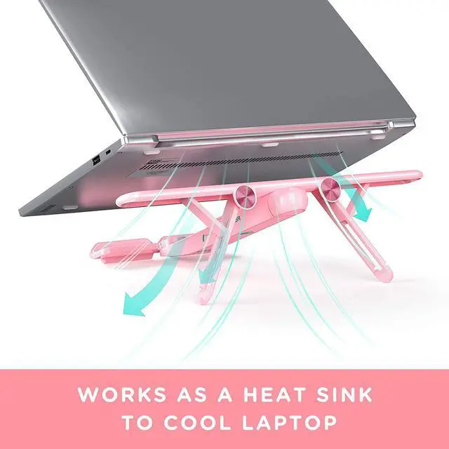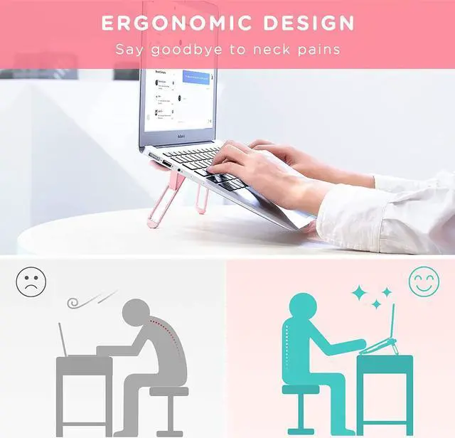 Portable and Foldable-Light and SmallThis portable laptop stand only weighs 0.8 pounds and can be quickly folded into a small size with 3 steps, less than 9 inches, which makes it easy to carry-on. Ideal for people who use the laptop outdoors or on business travel.