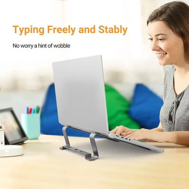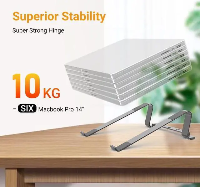 SUPERIOR STABILITY: This laptop stand is made of thickened aluminum alloy which hold up to 22lbs payloads. The triangular structure provides stability and no wobbling while typing.