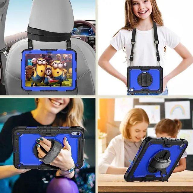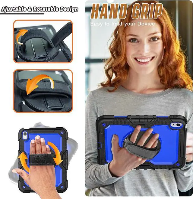 ?Built-in 360 Rotatable Kickstand + Hand Strap360-degree rotating swivel stand supports position of 3 angles(Vertical, Horizontal, and Halfway between), ideal for watching videos, conferences and travelling. Soft rotating handle strap prevents falling of iPad Generation 10th tablet, featuring convenient use for teachers, students, waiters, doctors, nurses and conference presenters.