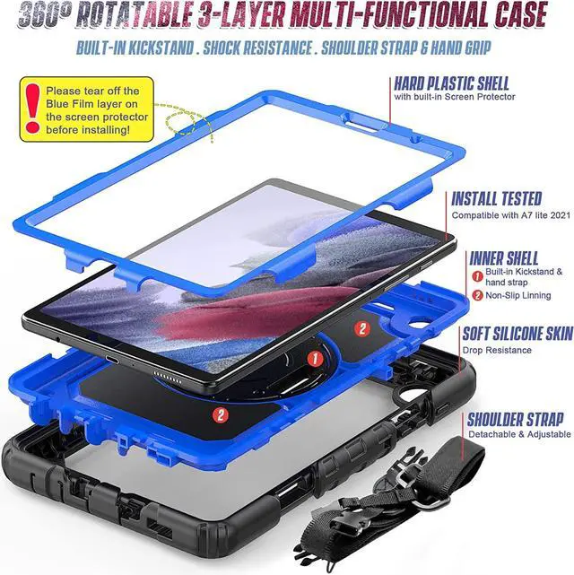 ?Built-in Screen Protector Trusty three-layer protection ensures that your Galaxy Tab A7 Lite tablet 2021 can take a tumble or a knock and keep right on going. It provides all-around protection against drops and scratches with a built-in anti-skidding screen protector and port covers.