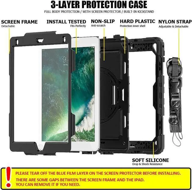 ?Detachable Screen Protector & Pencil HolderBuilt-in anti-skidding screen protector to protect your iPad 6th/5th Generation 9.7" 2018/2017 from fingerprints and scratches. Pencil holder can hold your pencil in place tightly to avoid falling out while walking. (S Pen is NOT included)