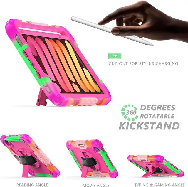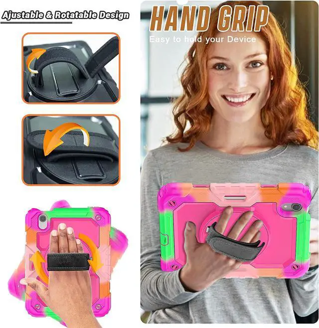iPad Mini 6th Generation Case 2021 for Kids Teen Girls with Screen Protector | iPad Mini 6 Case 8.3 Inch | Full Body Shockproof Case W/Pencil Holder Hand Strap Shoulder Strap | Colorful Rose