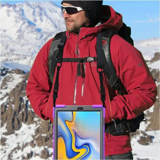 INTEGRATED PALMSTRAP,KICKSTAND AND INCLUDES SHOULDER STRAP: The shield case for samsung galaxy tab a t590 cover comes with all the features you need as you use your tablet daily. The built-in kickstand (which flips out in the back of the cover) allows you to watch your favorite shows. The palmstrap allows you to have a more secured grip on your tablet. It's best feature is the shoulder strap as it allows you to carry your device easily which is a very needed feature in todays lifestyle.