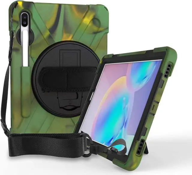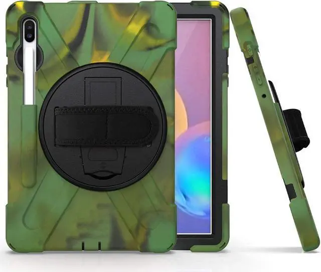 Galaxy Tab S7 Plus 12.4 Case Shockproof Heavy Duty Durable Dual-Layer Cover Kickstand Handstrap Shoulderstrap Sling for Samsung Galaxy Tab S7+ 2020 SM-T970 (Shield Camouflage)