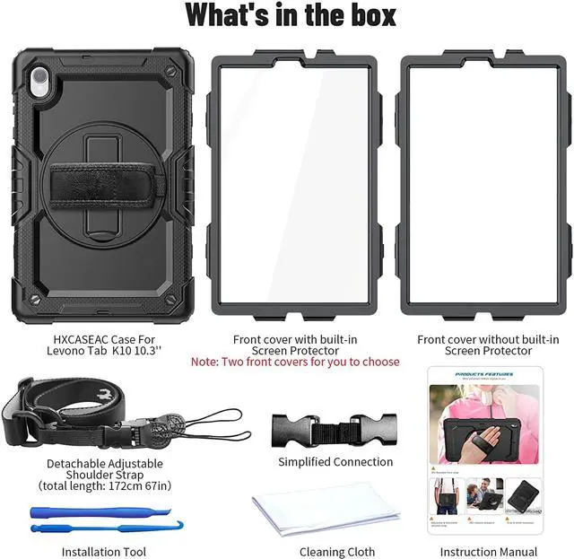 Shockproof + Screen ProtectorThis Lenovo tablet case 10.3 inch is designed with durable anti shock material, with soft silicone edge, hard plastic shell and built-in screen protector. The sturdy case can keep your tablet safe from shock, drop, scratch or accidental damages.