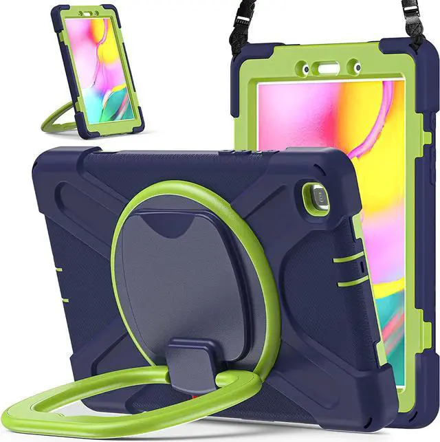HEAVY DUTY SHIELD CASE COVER - Designed to fit the Samsung Galaxy Tab A 8.0. Specific cut-outs for the Galaxy Tab A 8.0 2019 T290/T295's charging ports, front and back camera, home button, earphone jack, and volume/power controls. This case gives you total access to your tablets features and functions such as capturing photos/videos, syncing or charging without having to remove the case. Built-in hand strap, kickstand, and includes carrying shoulder strap sling.