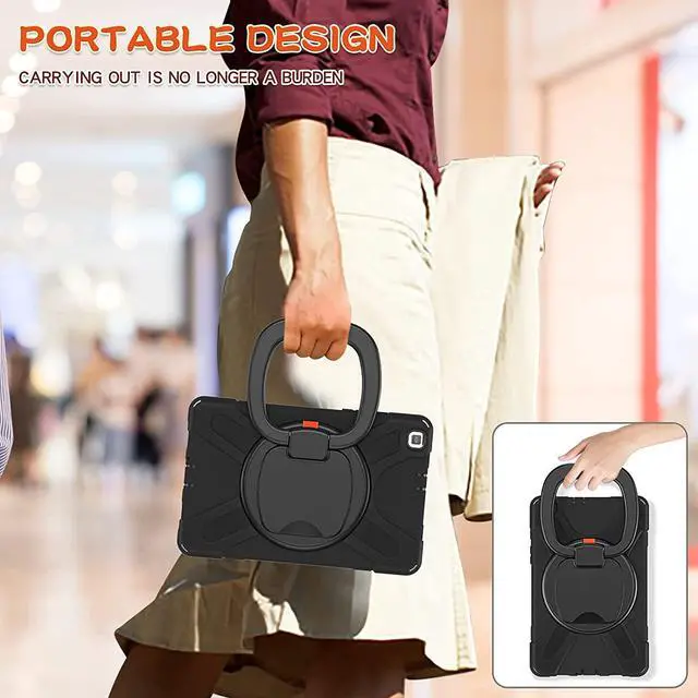 HEAVY DUTY SHIELD CASE COVER - Designed to fit the Samsung Galaxy Tab A 8.0. Specific cut-outs for the Galaxy Tab A 8.0 2019 T290/T295's charging ports, front and back camera, home button, earphone jack, and volume/power controls. This case gives you total access to your tablets features and functions such as capturing photos/videos, syncing or charging without having to remove the case. Built-in hand strap, kickstand, and includes carrying shoulder strap sling.