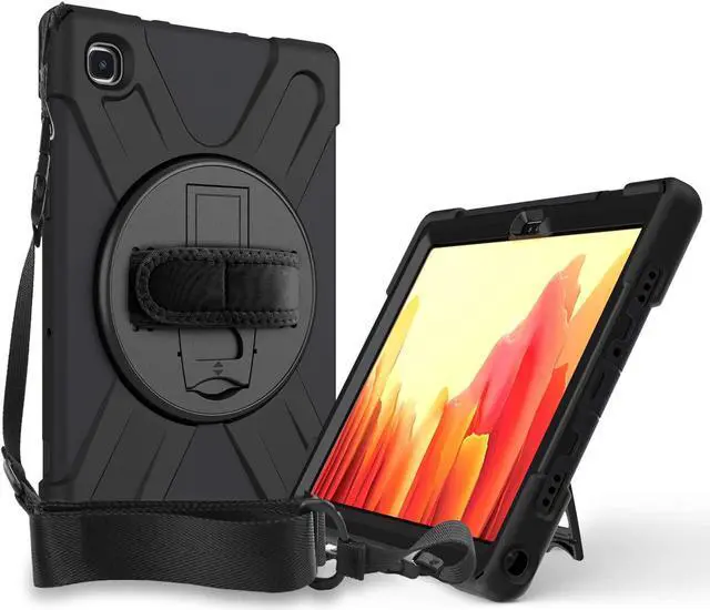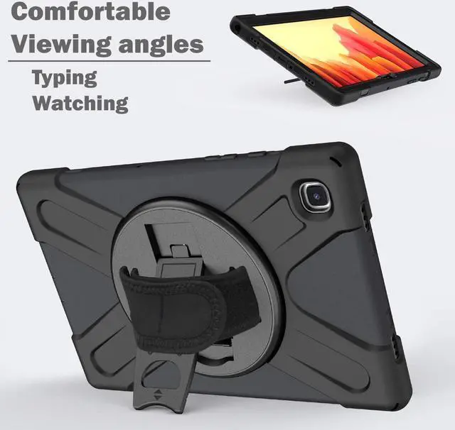 Easily Charge/Sync, Stand & Carry - For your convenience, this cover have cut-outs giving you access to your tablets charging port & earphone jack making this case easy to use and very convenient. Built-in kickstand that flips out and rotates giving you multiple viewing options so you can comfortably use your tablet device allowing you to enjoy, play, and have fun. Includes a removable shoulder-strap so you can carry your Samsung Galaxy Tab A7 10.4 smt500/smt505