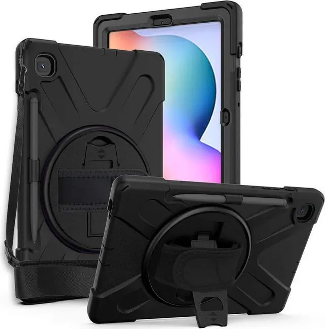 • HEAVY DUTY SHIELD CASE COVER - Designed to fit the Samsung Galaxy Tab S6 Lite. Specific cut-outs for the Galaxy Tab S6 Lite 2020 P610's charging ports, front and back camera, home button, earphone jack, and volume/power controls. This case gives you total access to your tablets features and functions such as capturing photos/videos, syncing or charging without having to remove the case. Built-in hand strap, kickstand, and includes carrying shoulder strap sling.