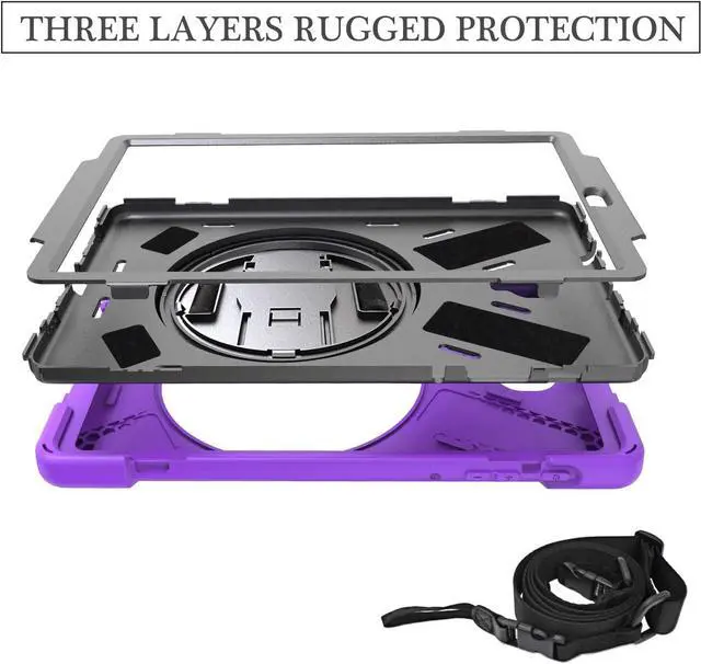 A VERSATILE COVER FULL OF FUNCTIONS - Built-in Kickstand allows you to enjoy your tablet in landscape view. Palmstrap that is adjustable to the size of your hand gives you a strong and secure grip on your device wich is perfect when you are always on-the-go. Need your tablet on you but your hands are tied? You can use an included shoulder strap that can be removed. It allows to have your device on your shoulder securely and provides the perfect portability.