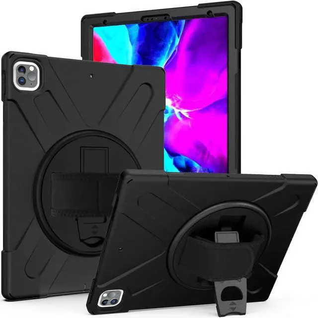 HEAVY DUTY SHIELD CASE COVER - Designed to fit the Apple iPad Pro 12.9 3rd 4th Generation. Specific cut-outs for the iPad Pro 12.9 3rd/4th Gen's charging ports, front and back camera, home button, earphone jack, and volume/power controls. This case gives you total access to your tablets features and functions such as capturing photos/videos, syncing or charging without having to remove the case. Built-in hand strap, kickstand, and includes carrying shoulder strap sling.